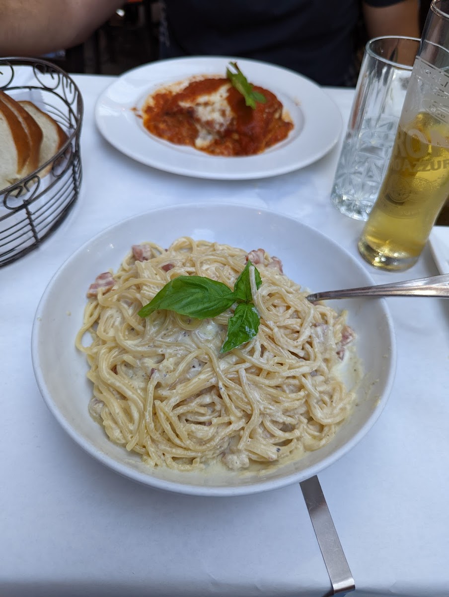 If you’re looking for a starter, don’t miss the bruschetta. The tomatoes are fresh and perfectly seasoned, and the crispy bread adds just the right amount of crunch. For those craving something a little heartier, the pizza is another great choice. The thin, crispy crust combined with a rich, savory sauce and an assortment of cheeses is a winning combination. Whether you opt for a classic margherita or something more adventurous like the prosciutto and arugula pizza, you can't go wrong.
